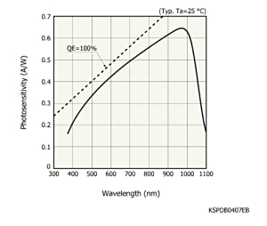 | 灵敏度波长范围 | 380 to 1100 nm |
