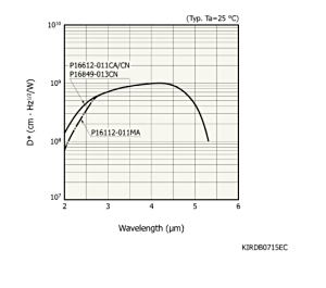 测量条件 | Ta = 25°C,检测率 D*:λ = λp,fc = 1200 Hz,Δf = 1 Hz |