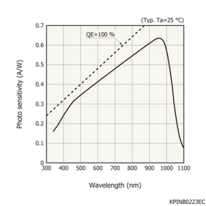 | 测量条件 | Ta = 25°C,典型值,感光灵敏度:λ = λp,暗电流:VR = 70 V,截止频率:VR = 70 V,结电容:VR = 70 V,f = 1 MHz,噪声等效功率:VR = 70 V,除非另有说明 |